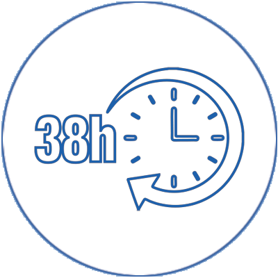 38h Wochenarbeitszeit und ein Arbeitszeitkonto.